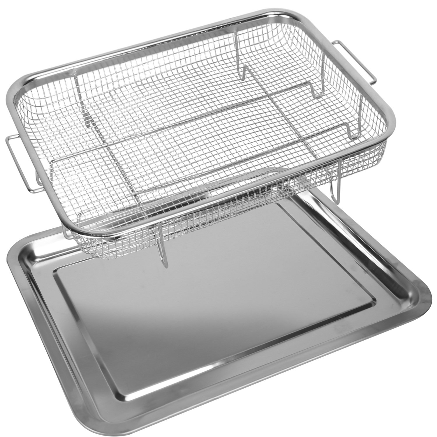 Home > 2Pcs Air Fryer Basket Tray 15.35x11.61in Stainless Steel Rustproof Non-Stick Oven Pan and Tray For Bake Grill Crispy Food Dishwasher Safe