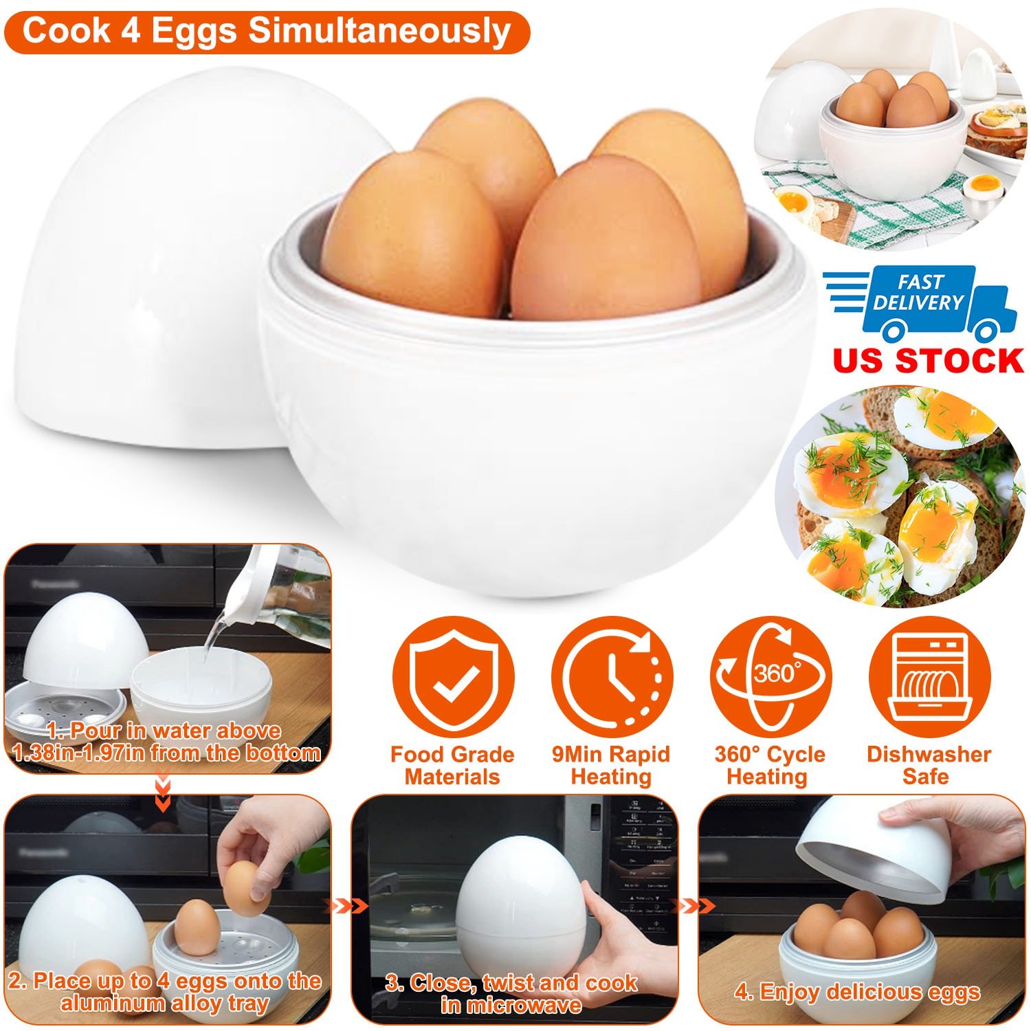 Home > Microwave Egg Boiler Soft Medium Hard Egg Steamer Ball Shape Cooker up to 4 Eggs Dishwasher Safe