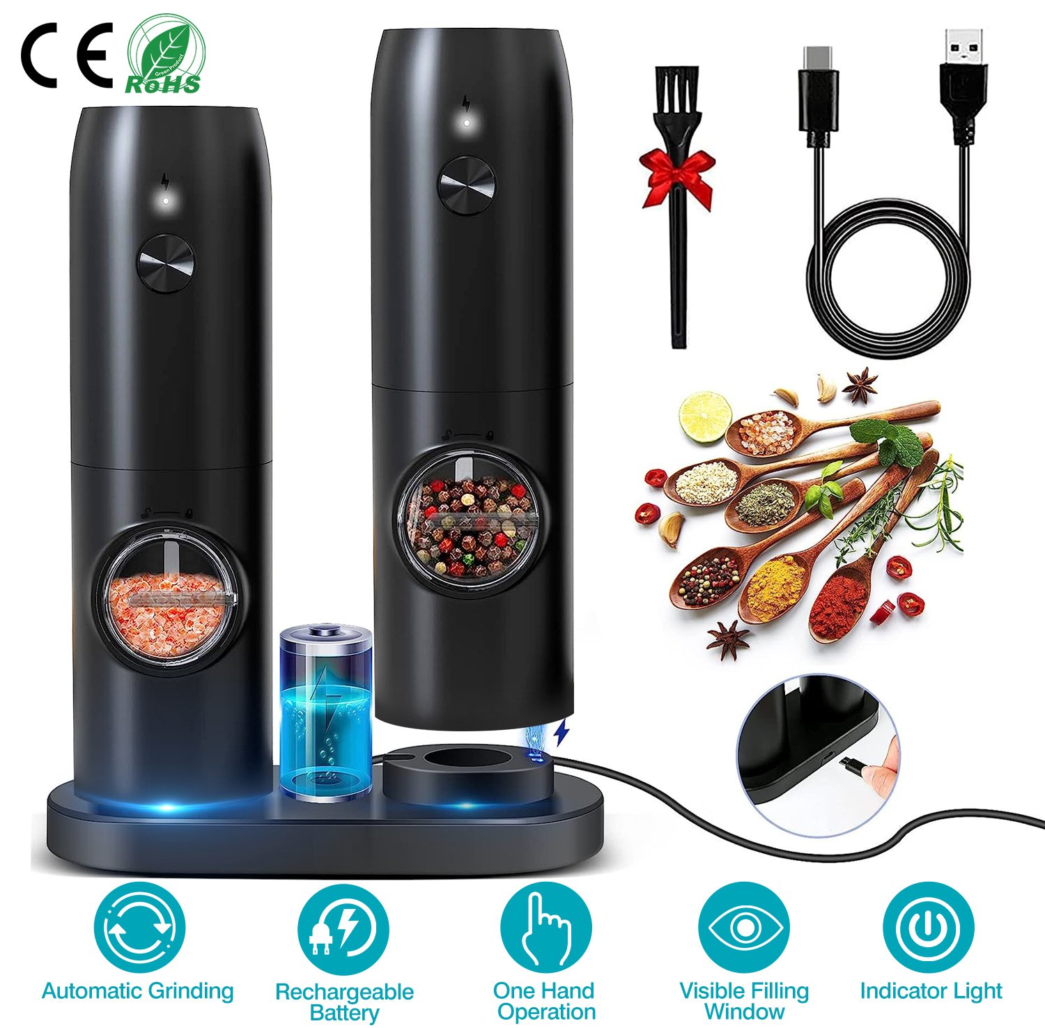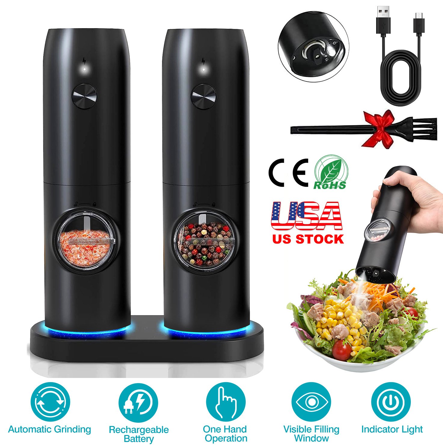 Electric Salt and Pepper Grinder Rechargeable Charging Base Automatic Salt Mill LED Indicator Adjustable Coarseness One Hand Easy Operation Electric Salt and Pepper Grinder Rechargeable Charging Base Automatic Salt Mill LED Indicator Adjustable Coarseness One Hand Easy Operation Electric Salt and Pepper Grinder Rechargeable Charging Base Automatic Salt Mill LED Indicator Adjustable Coarseness One Hand Easy Operation Electric Salt and Pepper Grinder Rechargeable Charging Base Automatic Salt Mill LED Indicator Adjustable Coarseness One Hand Easy Operation Electric Salt and Pepper Grinder Rechargeable Charging Base Automatic Salt Mill LED Indicator Adjustable Coarseness One Hand Easy Operation Electric Salt and Pepper Grinder Rechargeable Charging Base Automatic Salt Mill LED Indicator Adjustable Coarseness One Hand Easy Operation