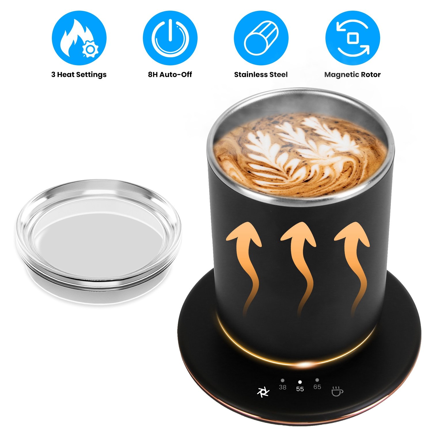 Home > Auto Stirring Coffee Mug with Lid Temperature Control Self-Heating Automatic Magnetic Mixing Mug with 3 Heat Settings Auto-Off Function For Coffee Tea