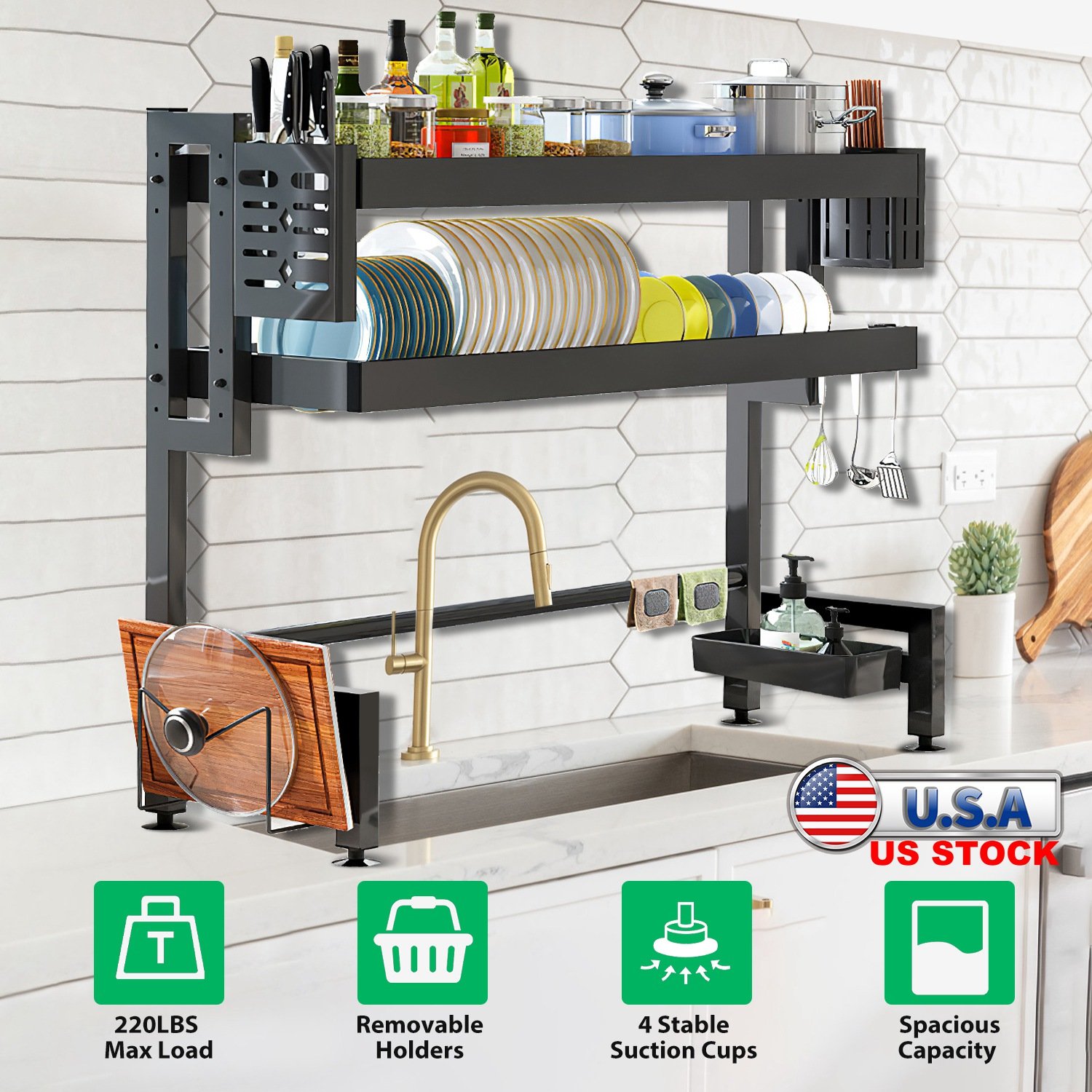 Home > 2-Tier Over the Sink Dish Drying Rack Drainer Utensil Organizer Holder Tableware Organizer Dish Drying Rack for Kitchen Countertop Carbon Steel