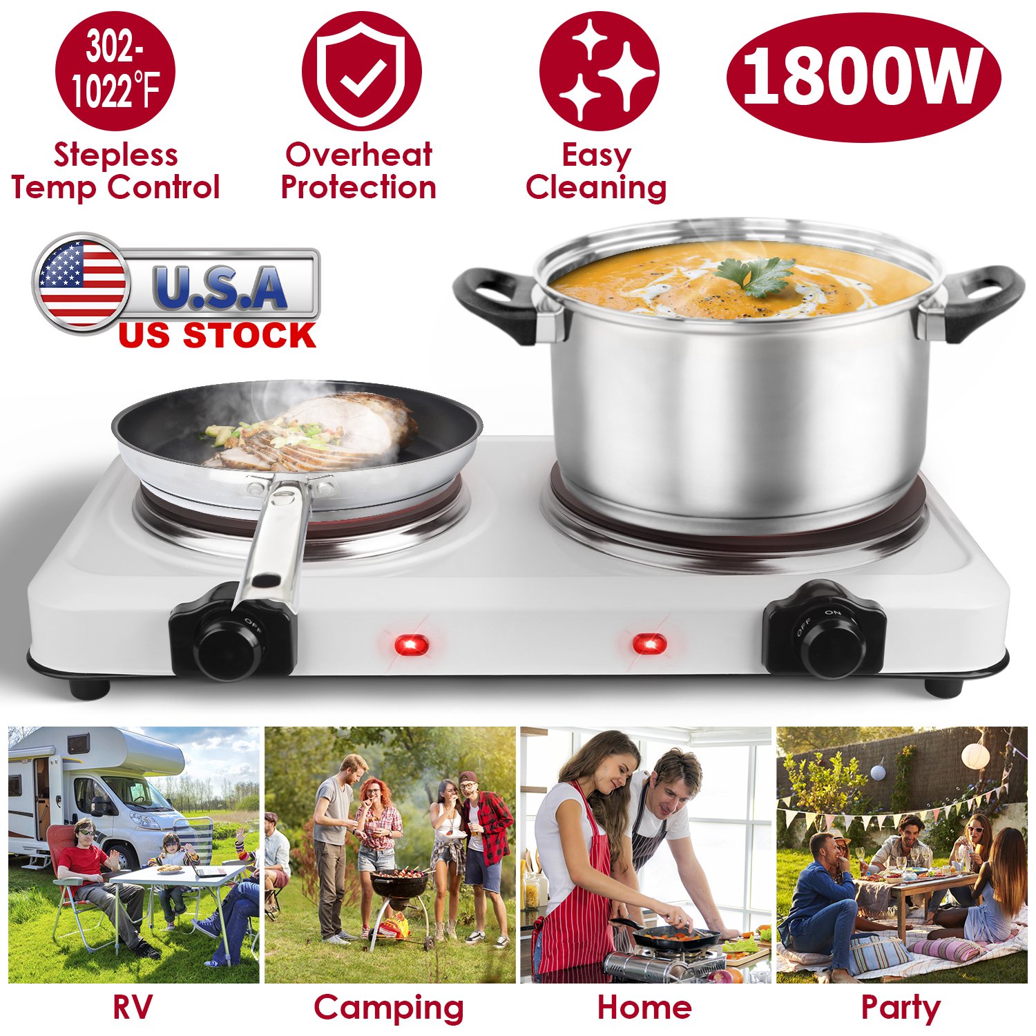 Home > 1800W Electric Infrared Dual Burner Portable Heating Hot Plate Stove Countertop RV Hotplate with 7.5” & 6.3” Glass Cooktop Stepless Temperature Adjust