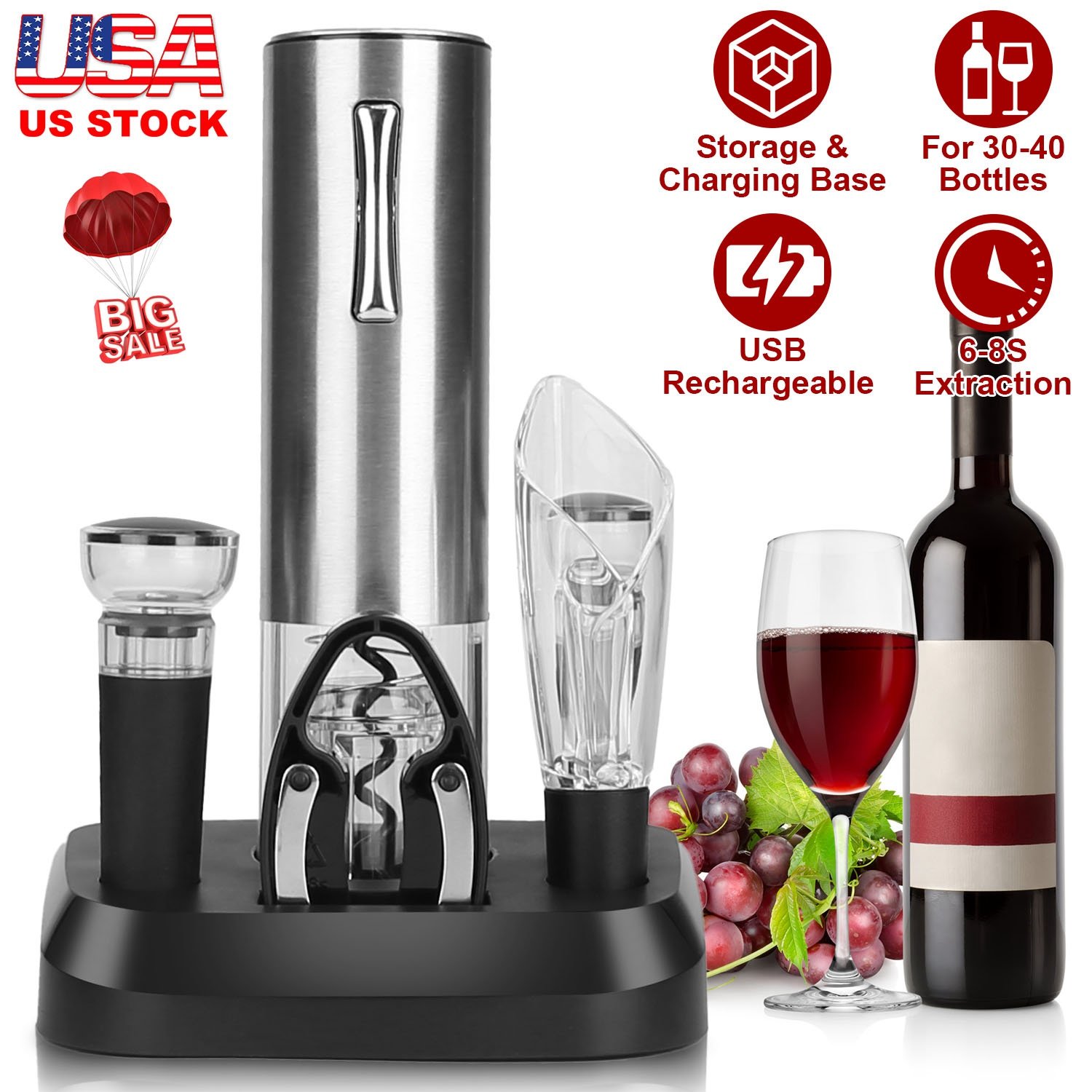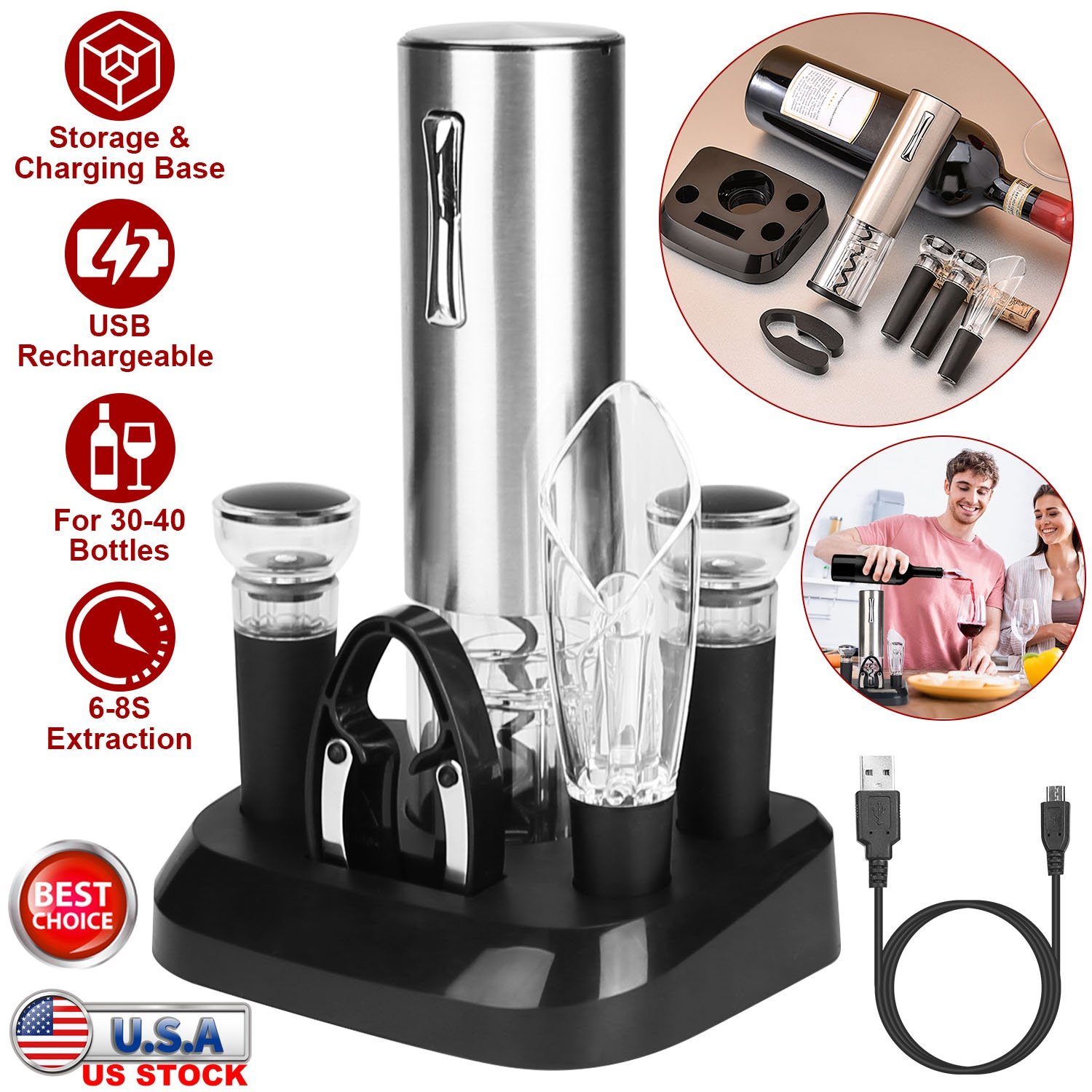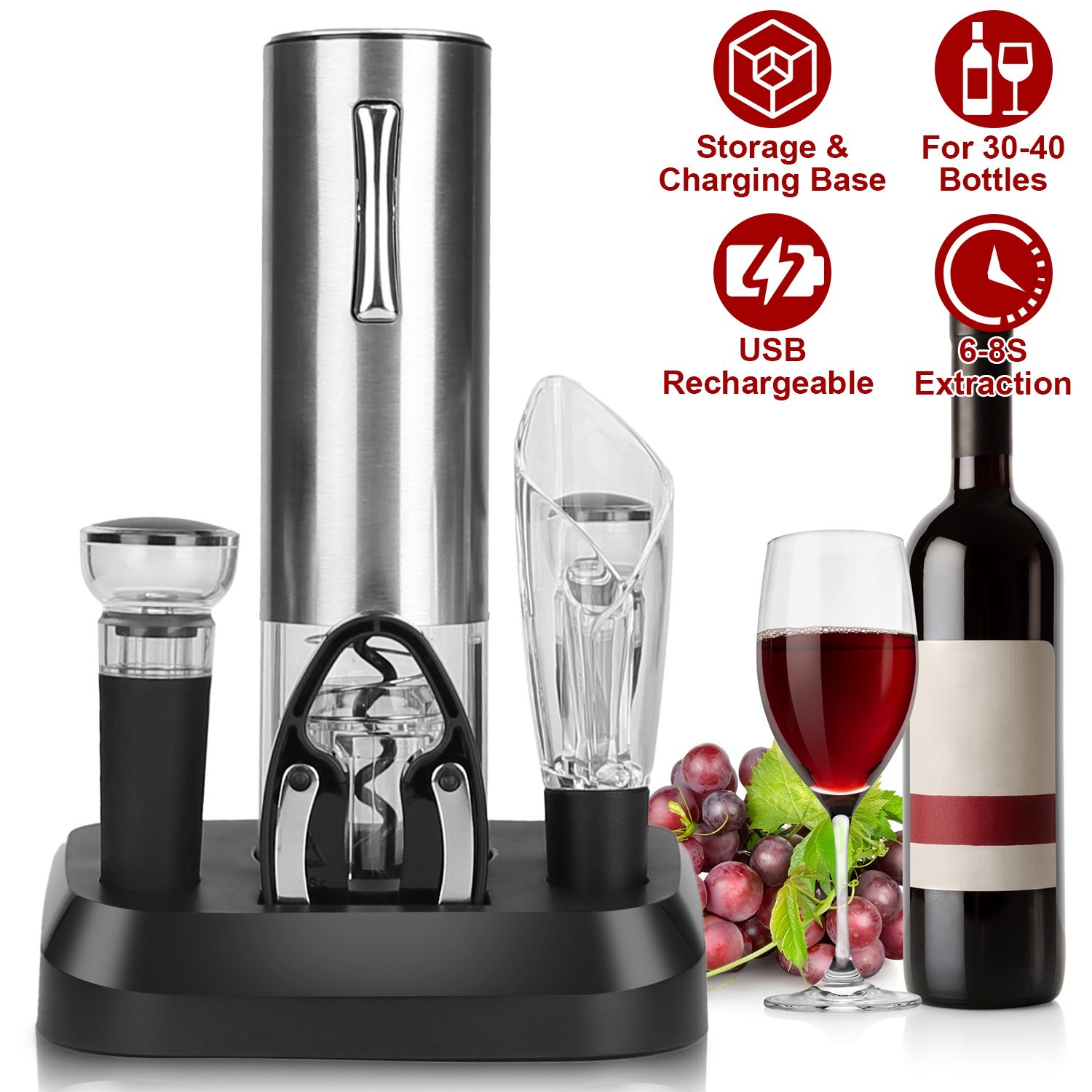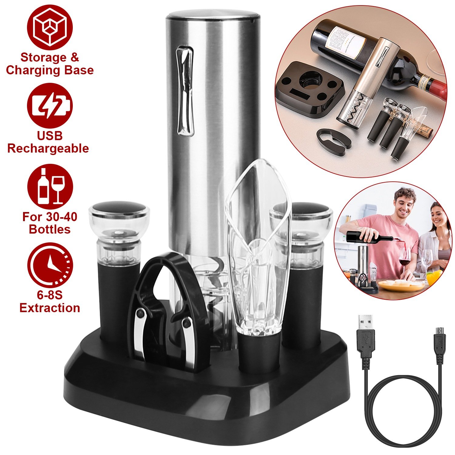 5-In-1 Electric Wine Opener Set USB Rechargeable Wine Corkscrew Bottle Opener Cordless Corkscrew Remover with Charging Base with Wine Pourer Vacuum St 5-In-1 Electric Wine Opener Set USB Rechargeable Wine Corkscrew Bottle Opener Cordless Corkscrew Remover with Charging Base with Wine Pourer Vacuum St 5-In-1 Electric Wine Opener Set USB Rechargeable Wine Corkscrew Bottle Opener Cordless Corkscrew Remover with Charging Base with Wine Pourer Vacuum St 5-In-1 Electric Wine Opener Set USB Rechargeable Wine Corkscrew Bottle Opener Cordless Corkscrew Remover with Charging Base with Wine Pourer Vacuum St 5-In-1 Electric Wine Opener Set USB Rechargeable Wine Corkscrew Bottle Opener Cordless Corkscrew Remover with Charging Base with Wine Pourer Vacuum St 5-In-1 Electric Wine Opener Set USB Rechargeable Wine Corkscrew Bottle Opener Cordless Corkscrew Remover with Charging Base with Wine Pourer Vacuum St