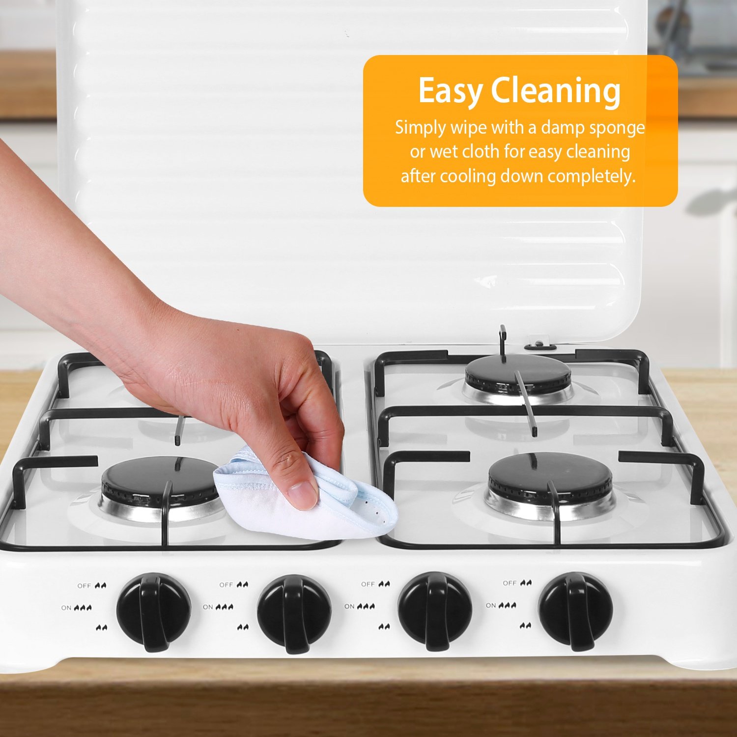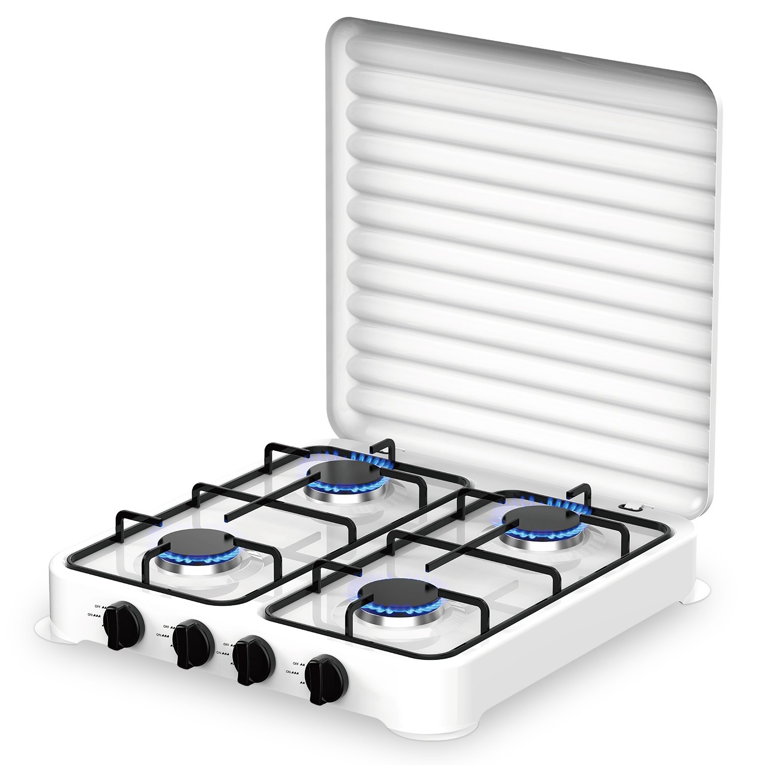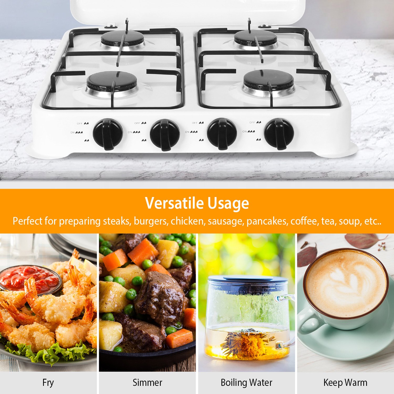 Gas Stove Dual Fuel Gas Hob Cooktop Manual Ignition Stovetop Powered by NG/LPG with 4 Burners Lid
