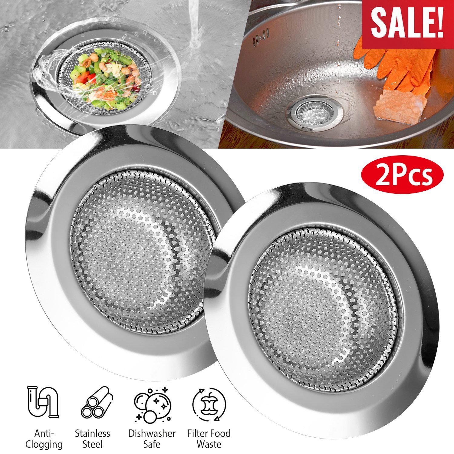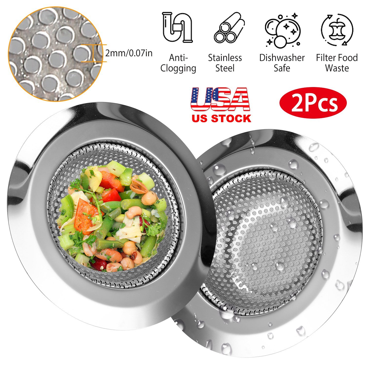 Home > 2Pcs 4.53in Kitchen Sink Strainer Stainless Steel Mesh Drain Basket Stopper 0.74 Wide Rim Food Catcher Sink Waste Plug