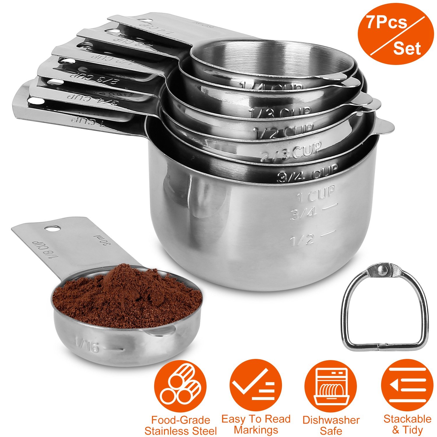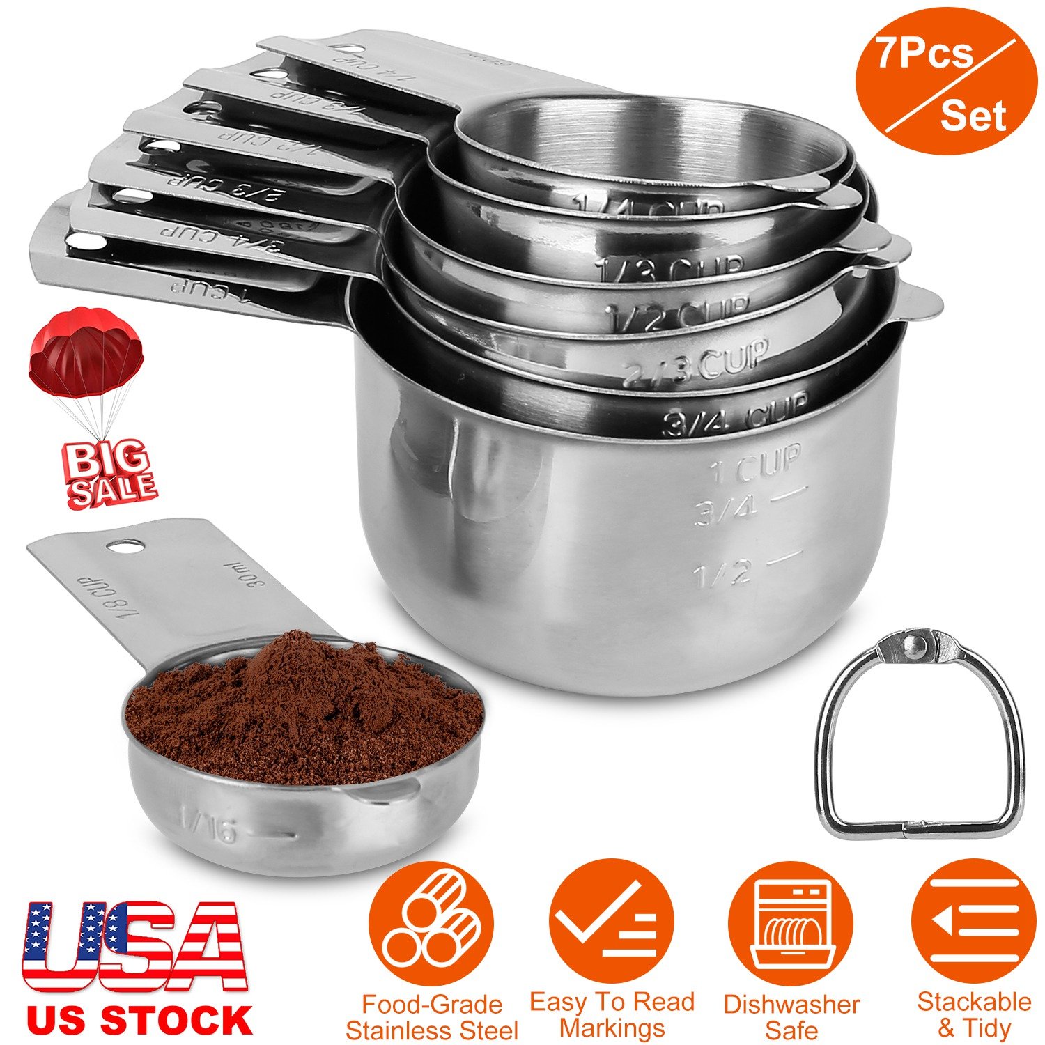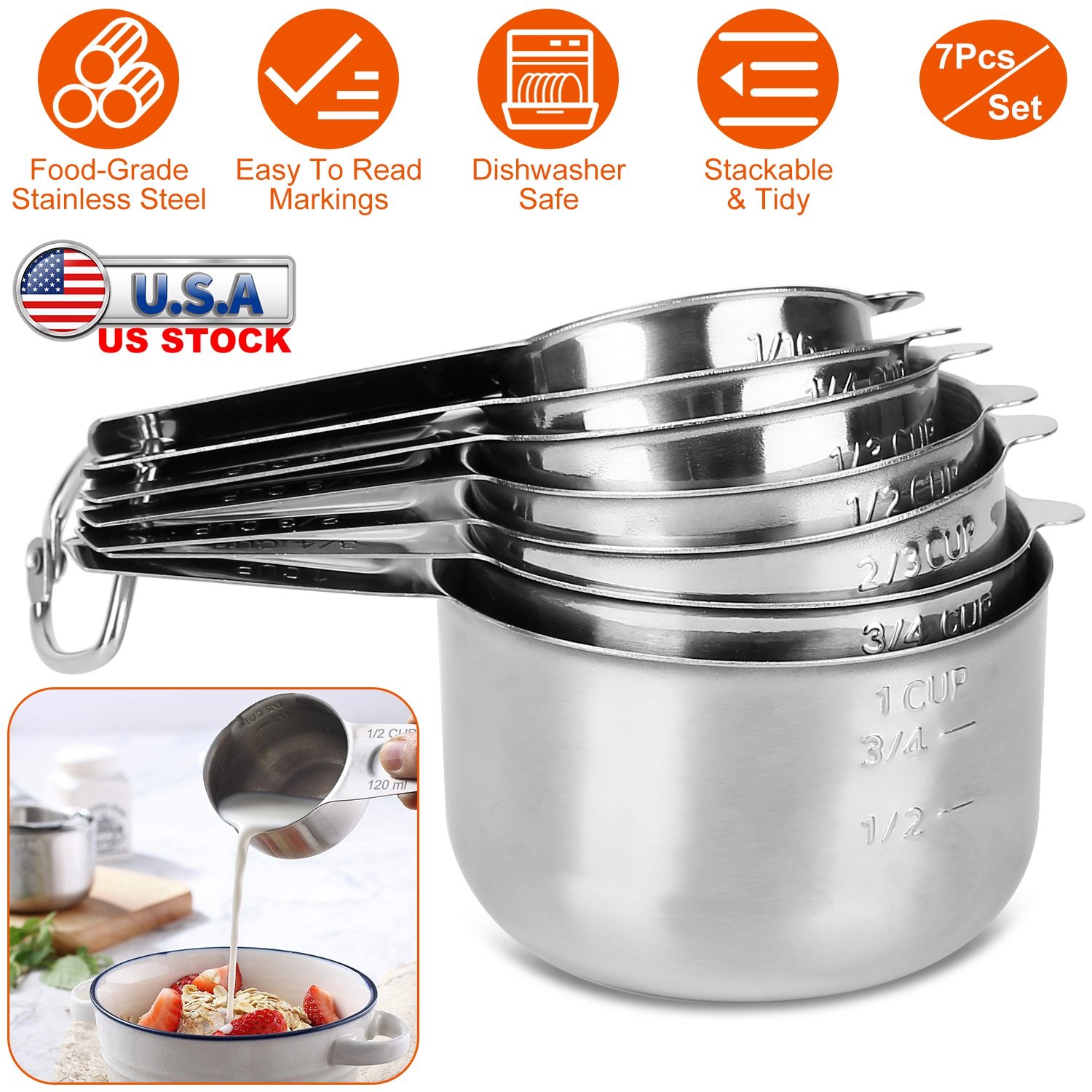 7Pcs Measuring Cups Stainless Steel Kitchen Measurement Tool for Cooking Baking Dry Spices Liquid Ingredients Easy to Read Markings