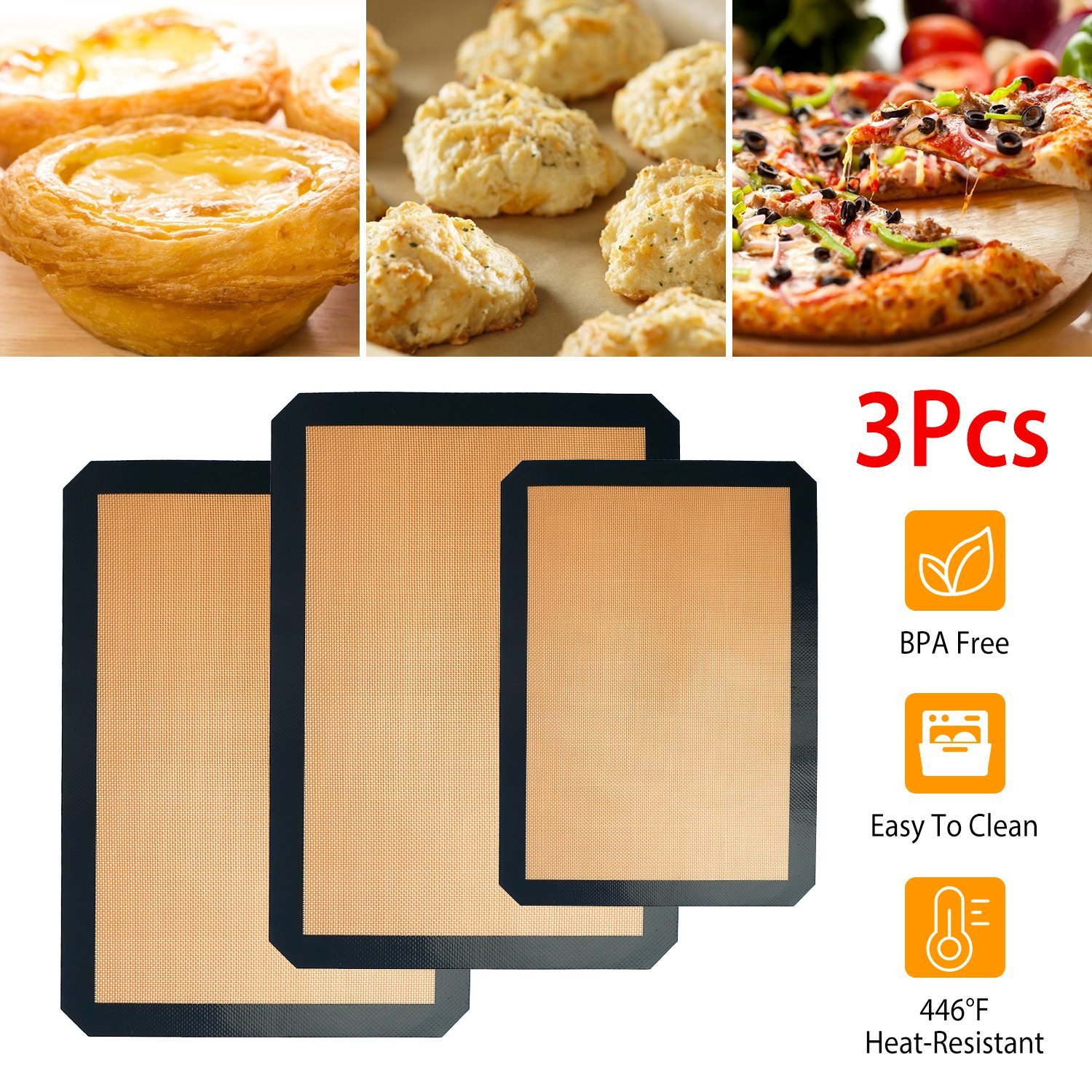 3Pcs Silicone Baking Mats Non-stick Reusable Baking Sheets Heat Resistant BPA Free Baking Mat For Cookies Pastry Bread Bun Fondant
