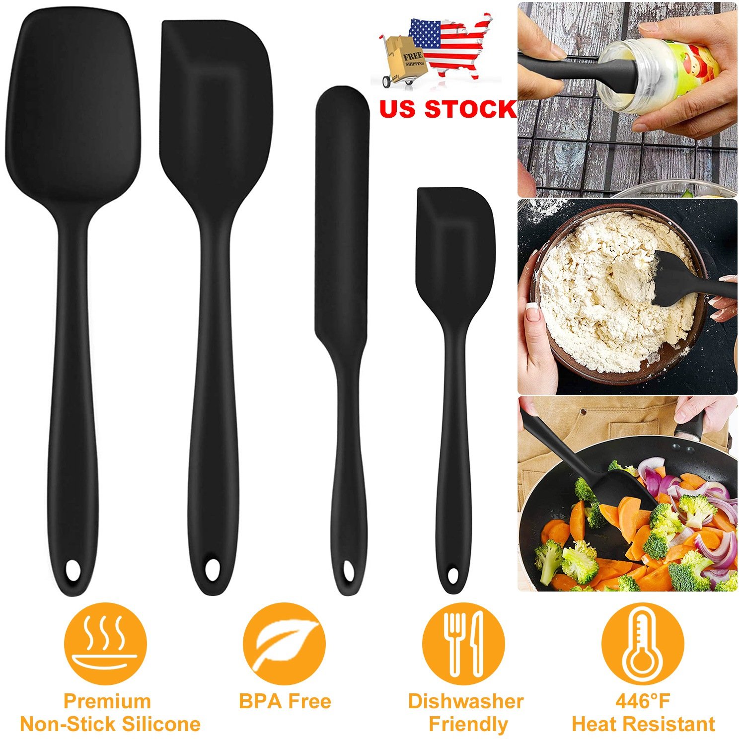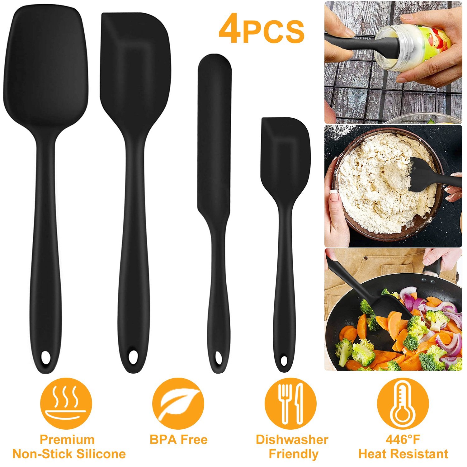 Home > 4Pcs Silicone Spatula Set 446°F Heat Resistant Jar Spoon Spatula Kitchen Utensils For Baking Mixing Scraping Cooking Baking Dishwasher Safe