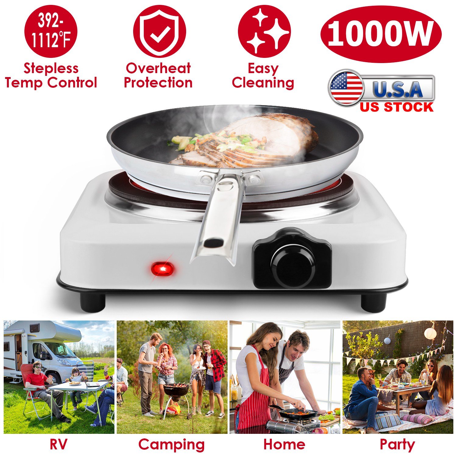Home > 1000W Electric Infrared Single Burner Portable Heating Hot Plate Stove Countertop RV Hotplate with 7.5” Glass Cooktop Stepless Temperature Adjustments