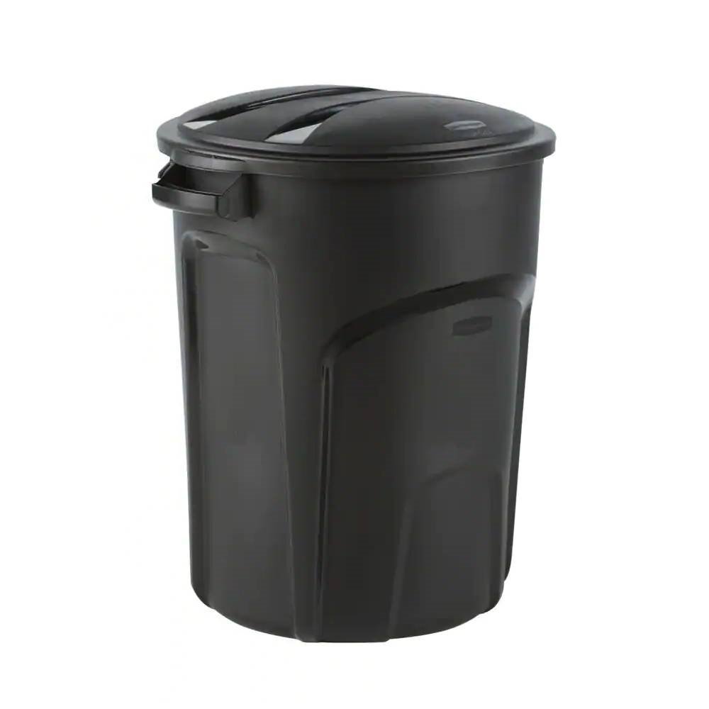 32-Gallon Black Plastic Indoor Outdoor Trash Can with Lid - Made in USA